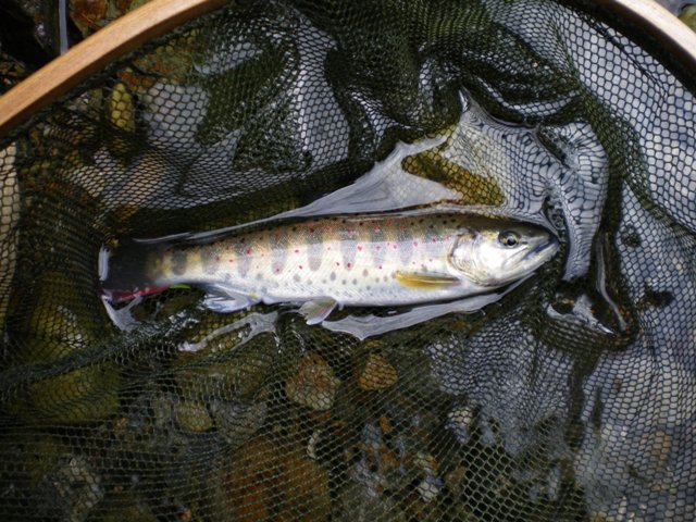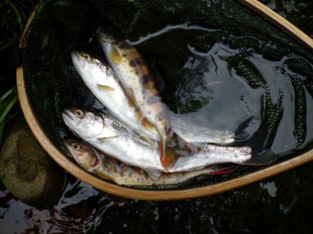下流部で20cmほどのイワナ2匹を何とかキャッチ。